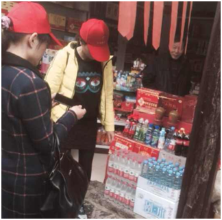 在肥西市场负责人带领下,先后拜访游客接待中心周边终端网点、古戏台万年台、三县桥、古南街、万年街、杨振宁故居、孙立人故居等周边网点,整体上了解了剐水在三河景区内的铺市情况 。在拜访位于古南街的百味园酒家时,更是令全体同行人员震惊。在入门处的三个包厢里,所有就餐人员全部饮用剐水,就餐饮料为野岭山核桃乳。在同饭店老板交谈时老板告诉我们,来这里吃饭的,都想尝尝三河最地道的土菜。土菜味道好 ,肯定要配备最绿色的剐水。
