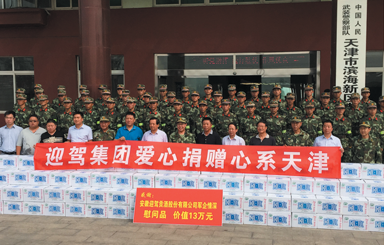 近年来,迎驾用爱心回报社会,以行动履行企业公民责任,支持慈善和社会公益事业,获誉“中国企业社会责任杰出企业”。1998年,迎驾捐资设立了六安市科教奖励基金;2000年,捐资800余万元在东淠河上修建了“迎驾大桥”;2002年,向老六佛路改造工程捐资600万元,此路后被命名为“迎驾大道”;2000年起,设立“迎驾基石工程奖”(后改名为“迎驾争先创优基石工程奖”),奖励优秀村干部、村组织等;2007年起,设立“迎驾教育基石工程奖”,每年拿出15万元,奖励全县优秀教师和学生。长江水灾、汶川地震、雅安地震、天津特大爆炸等灾害发生后,迎驾每次都伸出援助之手,捐款救灾,支援灾区重建,献上自己的爱心。