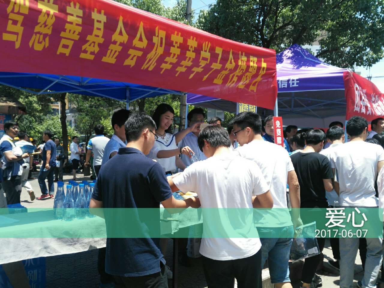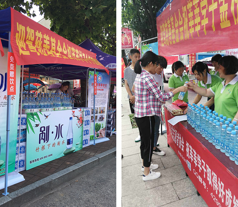 本次基金会购买了近20万瓶剐水,在安徽、江苏、湖北等地的100多个考点推出“助力高考送爱心”活动,为参考的莘莘学子及焦急等待的家长送去竹根剐水,让清冽甘甜剐水消除炎炎夏日的热浪,给考生和家长带来一份清凉!