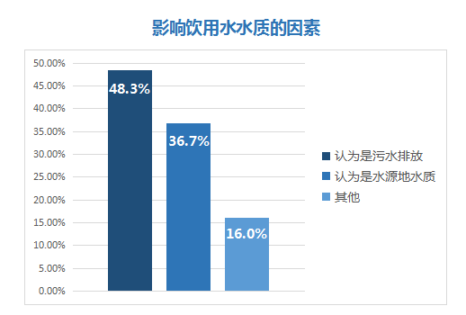 超八成被调查者认为污水排放和水源地水质是影响水质的主要因素,说明环境问题造成的水污染对公众产生了较大的负面影响。