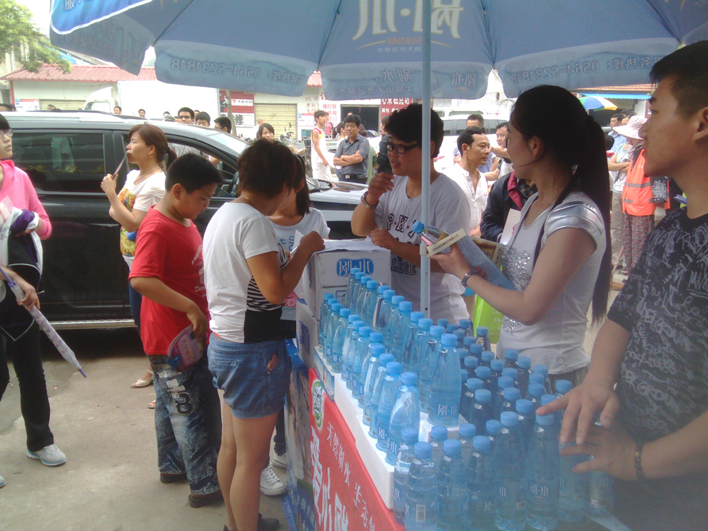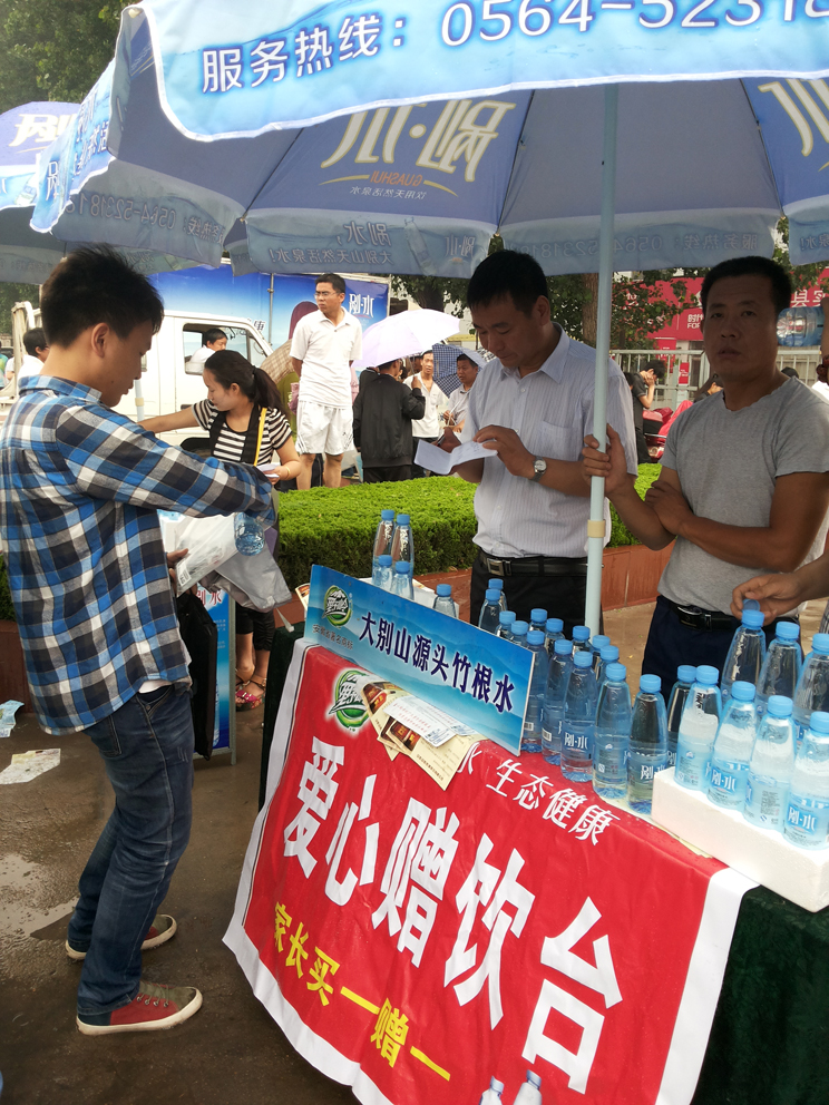 在考场外,我们将一瓶瓶剐水送到考生和家长手中,叮嘱家长要注意休息,并衷心祝福考生“十年寒窗苦读、一举成名天下”,所有的家长也都对我们此次公益行为表示了由衷的赞赏和感谢,考场外的两天时间里,家长们都在谈论着各自孩子的情况,脸上挂满的笑容暗示着对自己孩子的那份自信以及肯定。我们的工作人员不但给家长送上爱心剐水,更陪着家长们聊天解闷,谈一谈孩子,聊一聊学习,缓解了家长们的紧张之情。