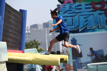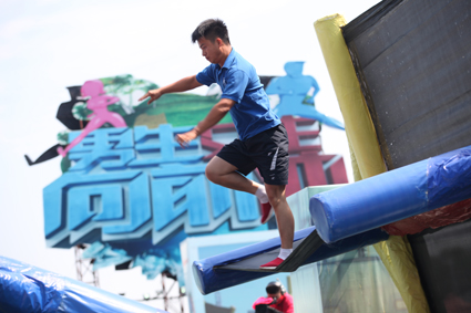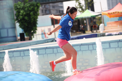 随着主持人的倒计时,有的女选手半途落水,成了“出水芙蓉”;有的体格比较健硕男选手们健步如飞,却一失足而未圆冲关梦,而冲关成功的选手,则赢来热烈的掌声,冲的是勇气,收获的是快乐和笑声。