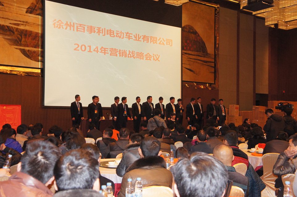 岁末年初,徐州百事利电动车厂家在享有中国电动车之城的丰县香格里拉大酒店举办了一场大型的厂商联谊会,暨2014年度百事利全国订货会。此次联谊会汇聚了全国各地优秀的客商2500人,会期三天,规模宏大,现场气氛热烈,影响广泛。